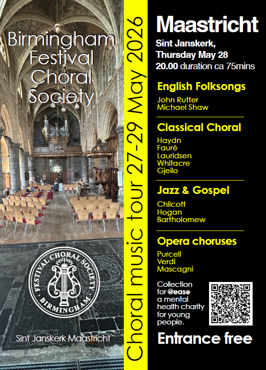 Het Birmingham Festival Choral Society (BFCS) komt met zijn 13e Europese concert tournee in mei 2026 naar Maastricht.