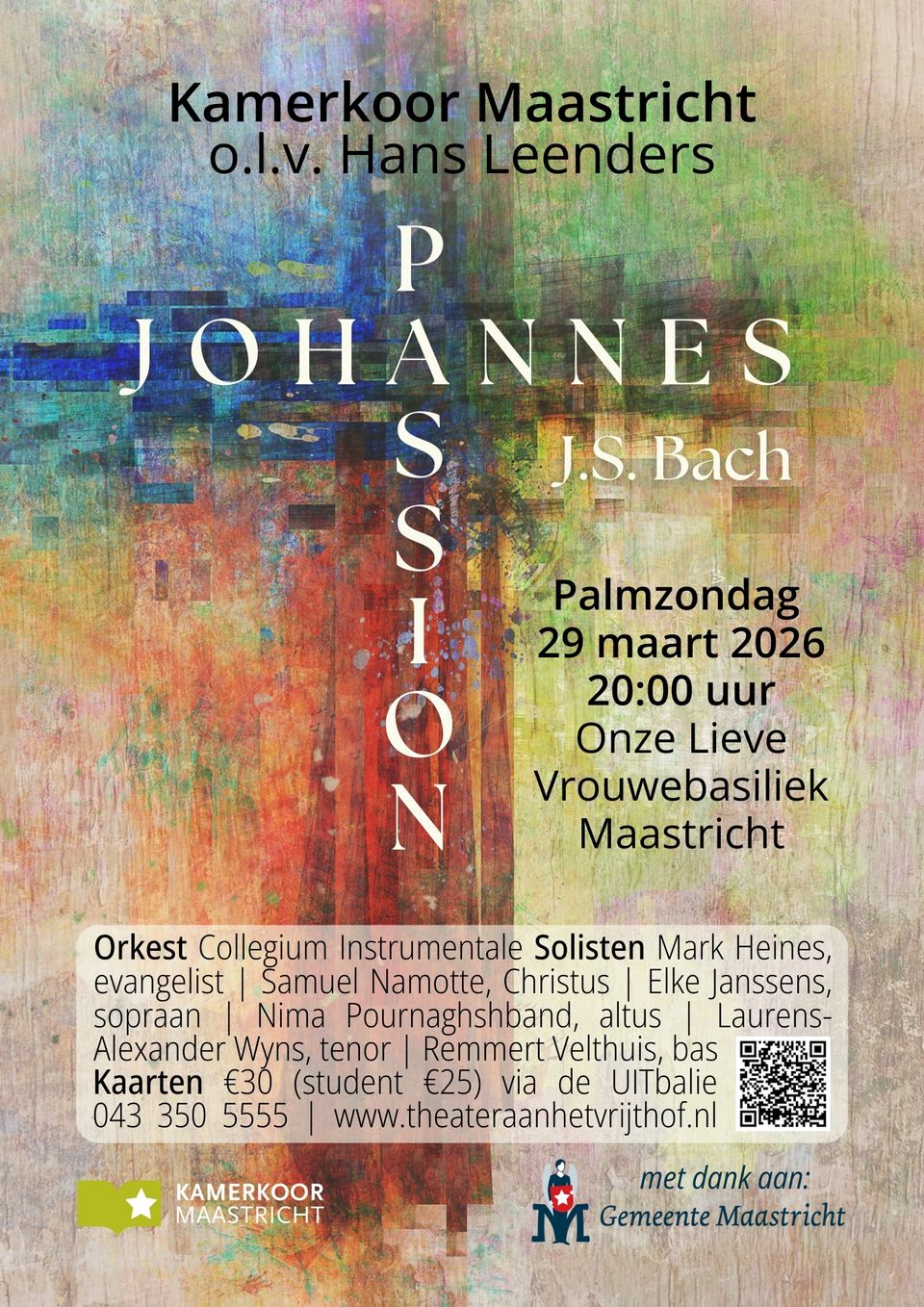 Bach koos delen uit het evangelie van Johannes om het lijdensverhaal te componeren:de evangelist vertelt, Christus spreekt wijze woorden en de overige solisten brengen verdieping aan. Het koor vertolkt op felle wijze de rol van het Joodse volk en benut daarnaast de koralen voor verstilling en bezinning. De artistieke leiding is in handen van dirigent Hans Leenders.