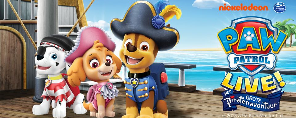 PAW Patrol Live! is terug met een gloednieuw spektakel: De Grote Piratenavontuur! Een energieke voorstelling vol muziek, plezier en spanning waar jonge fans en hun families van zullen genieten.